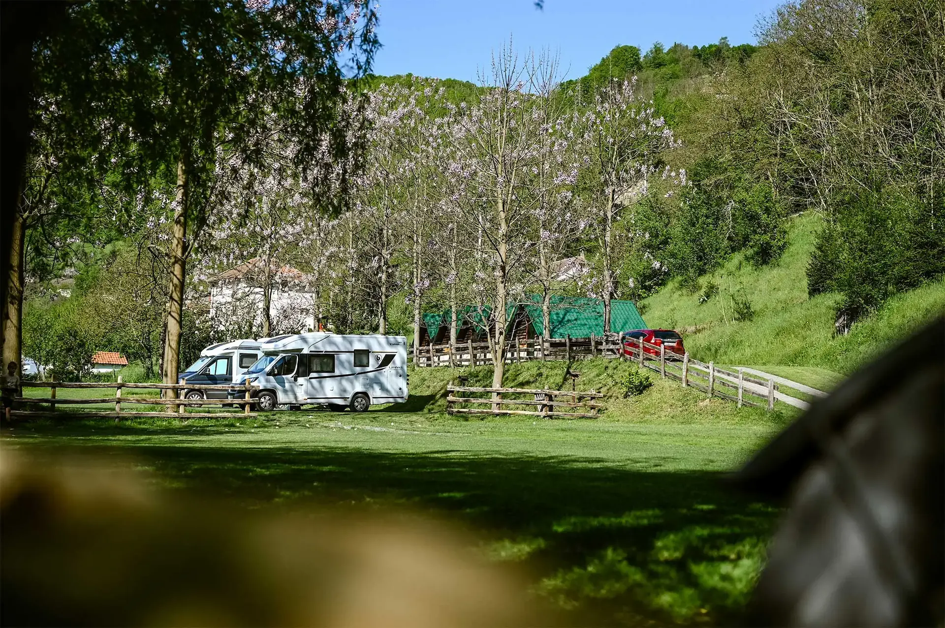 Choose your style of camping in Bosnia — bungalows, camper plots or tent spaces by the Drina.